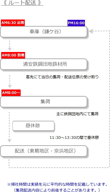 ◎ 当社では第一運送部(現場配送チーム)と第二運送部(ルート配送チーム)があります。